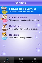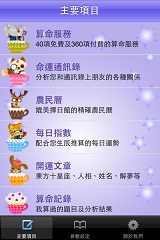 ◎命運通訊錄分析您和通訊錄上朋友的各種關係, 讓您知道誰會愛慕您, 誰和您來電, 誰對您忠誠, 誰會幫您破財, 誰是您的貴人等數十項分析, 還可製作成兩人及多人的命運關係圖讓您上傳Facebook或Email給他人。 ◎農民曆提供您媲美擇日館的精確農民曆,除了古人常用宜忌外,還加上了約會、告白、談判、簽約、產品發表、拜訪客戶等數十項現代人常用的宜忌。 ◎每日指數配合您的生辰推算您當日的財運、愛情、事業等吉凶指數及方位,並告訴您當日的幸運數字、方位、色彩及幸運物,讓您好運旺旺旺。 ◎開運文章為您精選了東方十星座、生肖、命理、風水、人相、姓名、測字、解夢、因果、廟宇、占星、事業等近500篇文章。 |